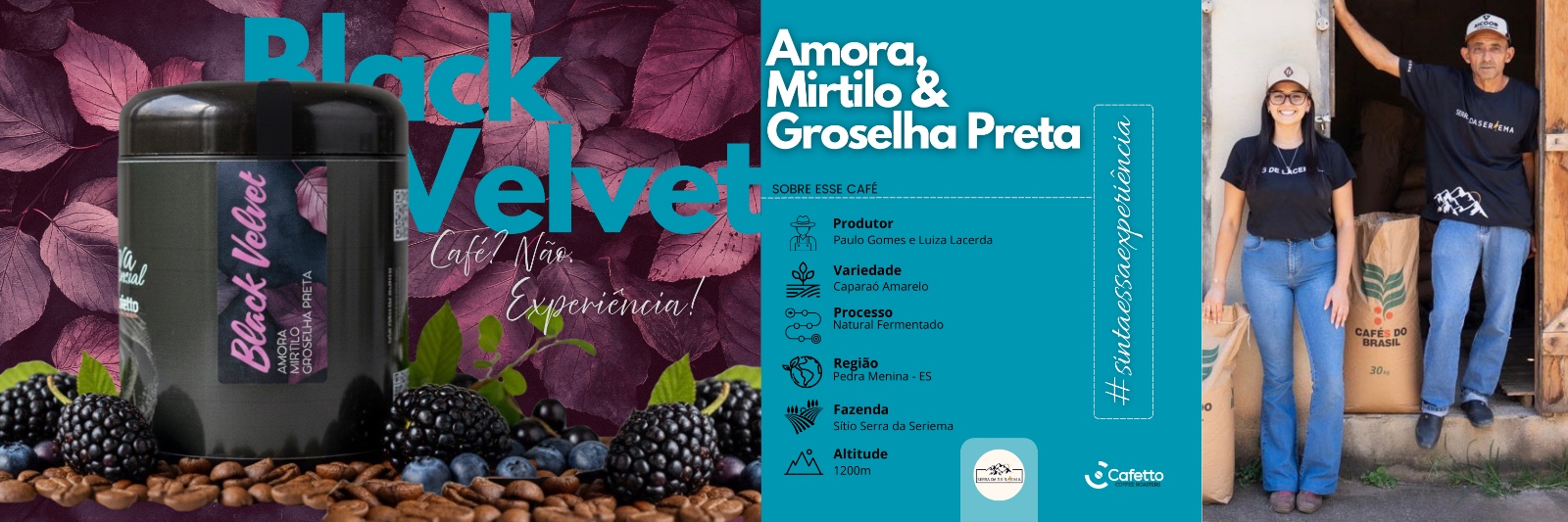 Através de um processo Natural Fermentado, a Luiza e seu pai, Paulo, conseguiram elevar a doçura a níveis extraordinários, revelando um corpo denso e aveludado que justifica seu nome. No paladar, uma explosão de frutas negras e roxas: a intensidade da Amora e do Mirtilo se funde à acidez sofisticada da Groselha Preta, criando uma finalização persistente e memorável.