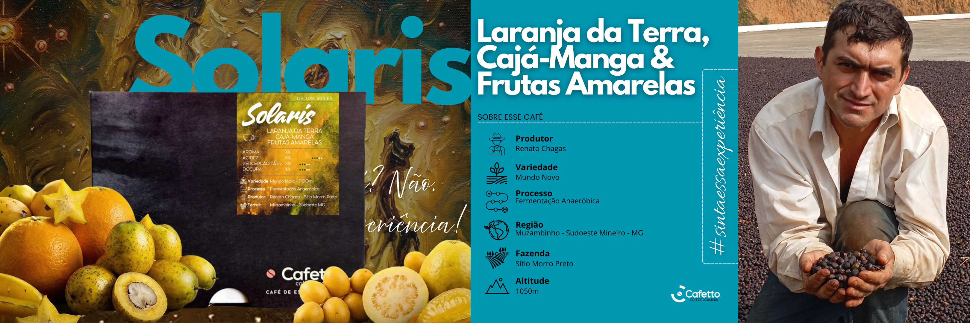 O café Solaris é uma celebração à luminosidade e ao frescor das montanhas de Minas Gerais. Cultivado no prestigiado Sítio Morro Preto, em Muzambinho (MG), este lote carrega a dedicação do experiente produtor Renato Chagas, que transformou o terroir da região em uma experiência sensorial radiante e inesquecível.